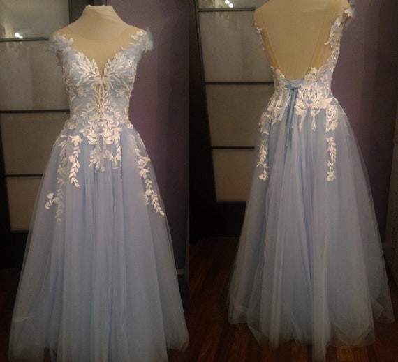 Incredible Powder Blue Wedding Dress Etsy With Lace Romantic Dusty
