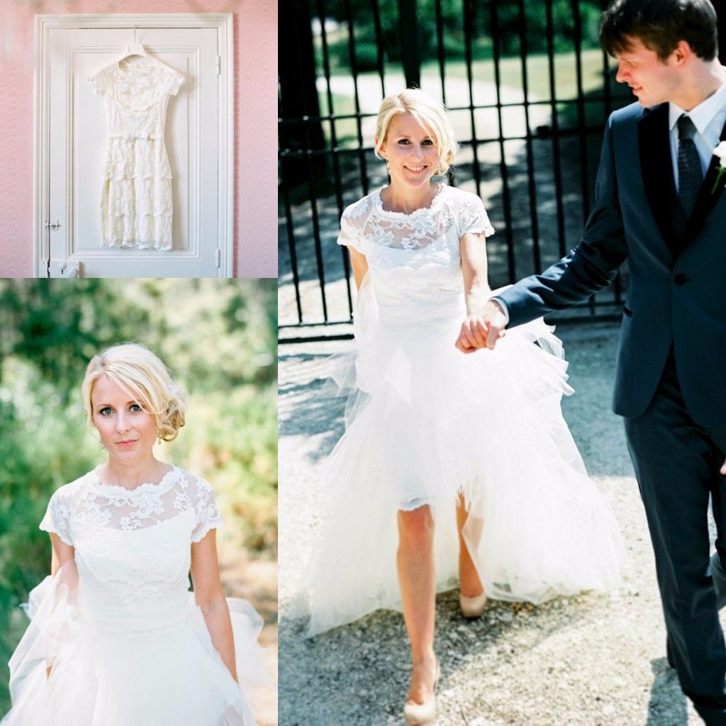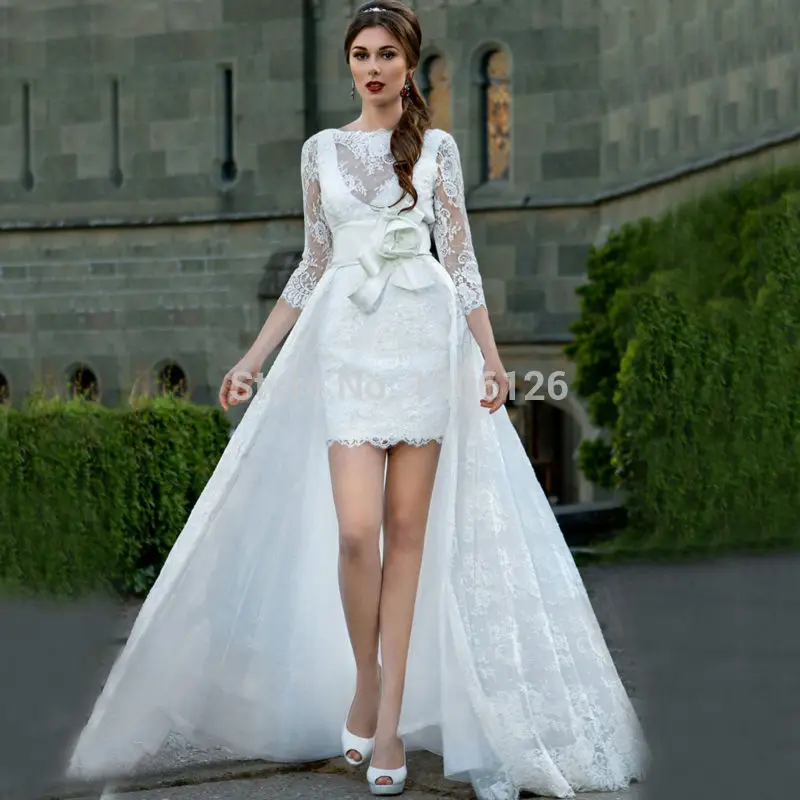 Rose Moda Lace Short Boho Wedding Dress 2019 With Removable Skirt