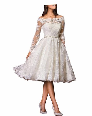 Knee Length Short Wedding Dresses Long Sleeves Off Shoulder Plus