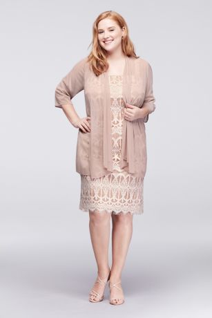 Applique Lace Petite Dress With Sheer Jacket David S Bridal