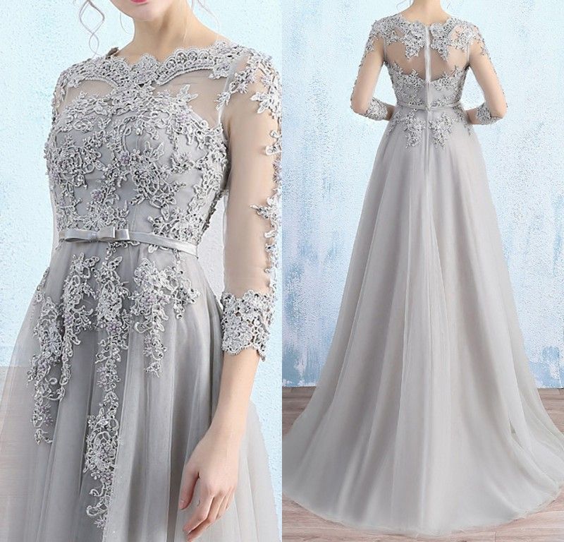 Gorgeous Light Gray Mother Of The Bride Dresses Illusion Sheer