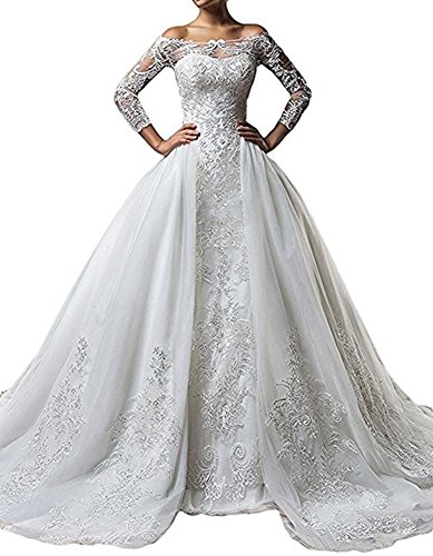 Ryanth Women S Mermaid Lace Wedding Dress Detachable Train 2019
