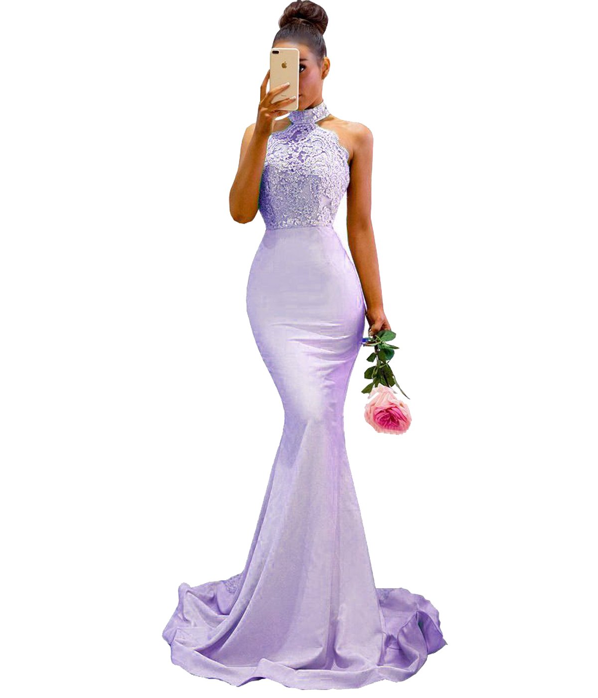 Women S Halter Mermaid Appliques Lace Long Bridesmaid Dress Formal