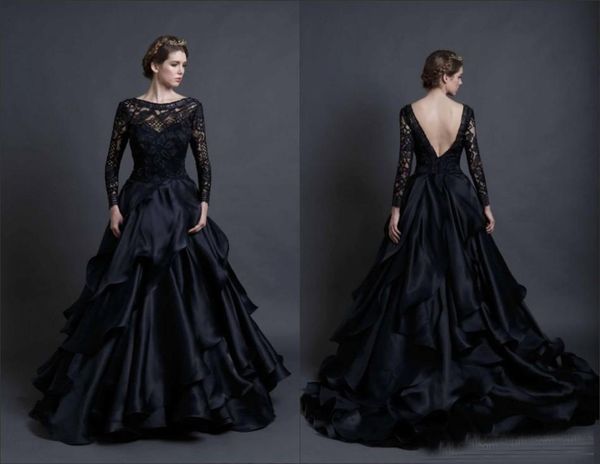 Black Wedding Dress With Long Sleeves Backless Sareh Nouri Winter