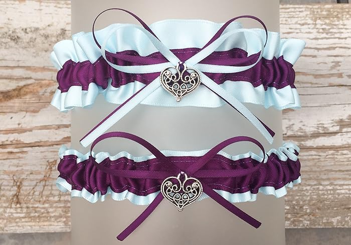 Double Heart Charm Garters Hot Pink Black Camouflage Wedding