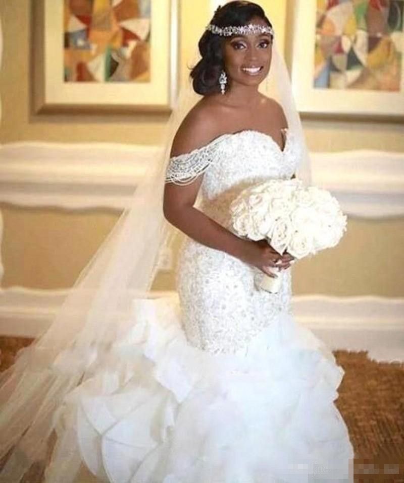 African Mermaid Wedding Dresses Ruffles Off The Shoulder Capped