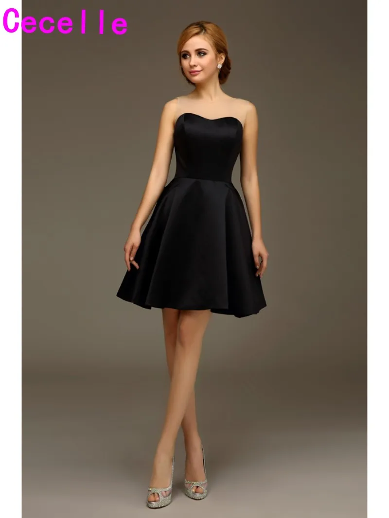 Simple Lace Short Bridesmaid Dresses Fashion A Line Slim Black