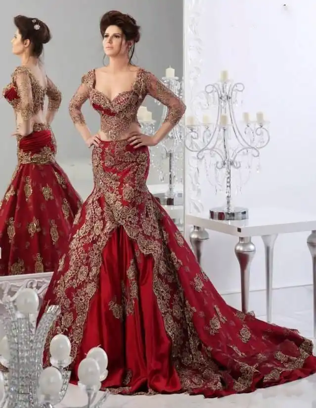 New Vintage Burgundy Gold Two Pieces Mermaid Muslin Arabic Wedding