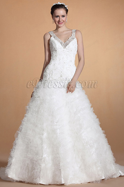 Sexy V Cut Straps Beaded Lace Decorated Mermaid Wedding Gown