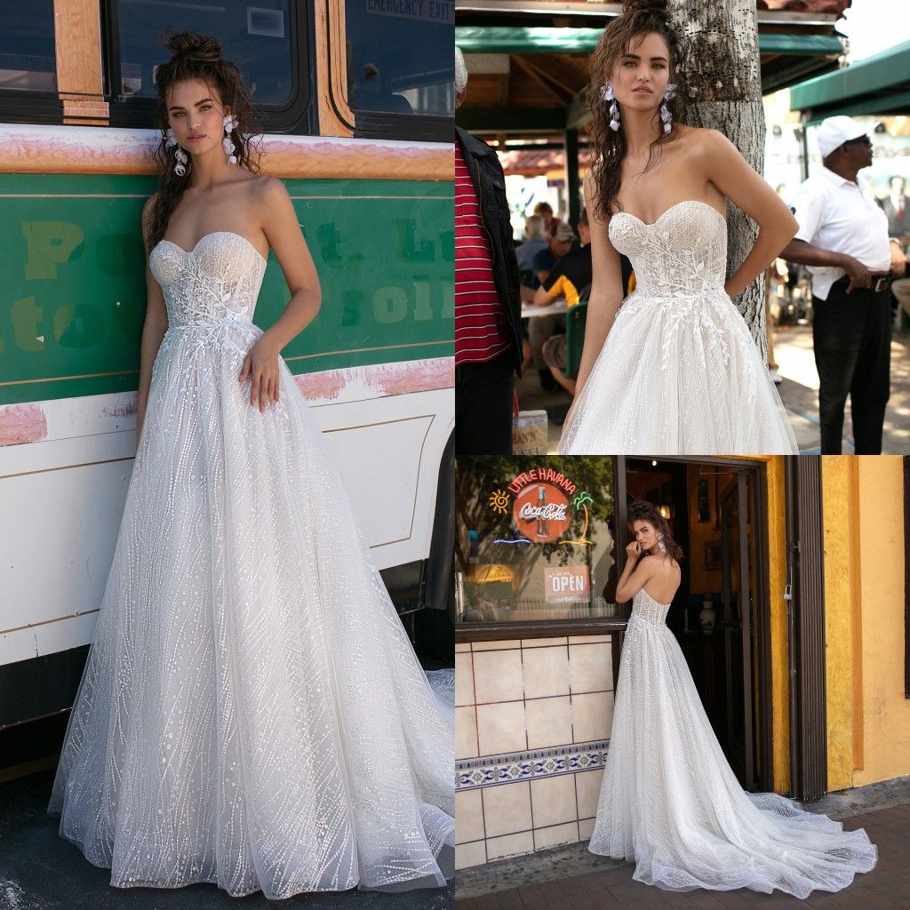 Discount 2020 Beach Wedding Dresses A Line Strapless Satin Sweep