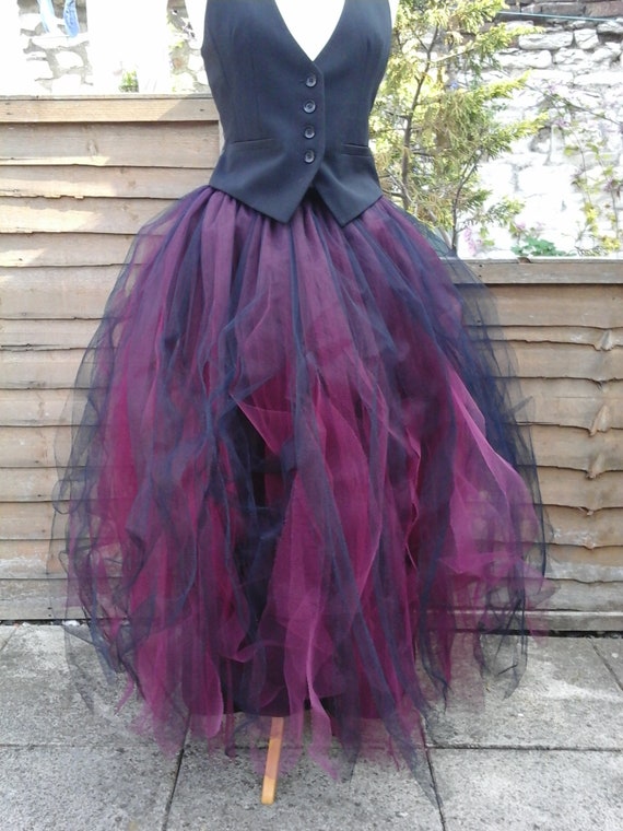Womens Tutu Skirt Tulle Bespoke Goth Black Burgundy Floor Etsy