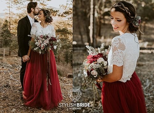 Amazon Com Belle Wine Dress Tulle Set Lace Crop Top With Sleeves