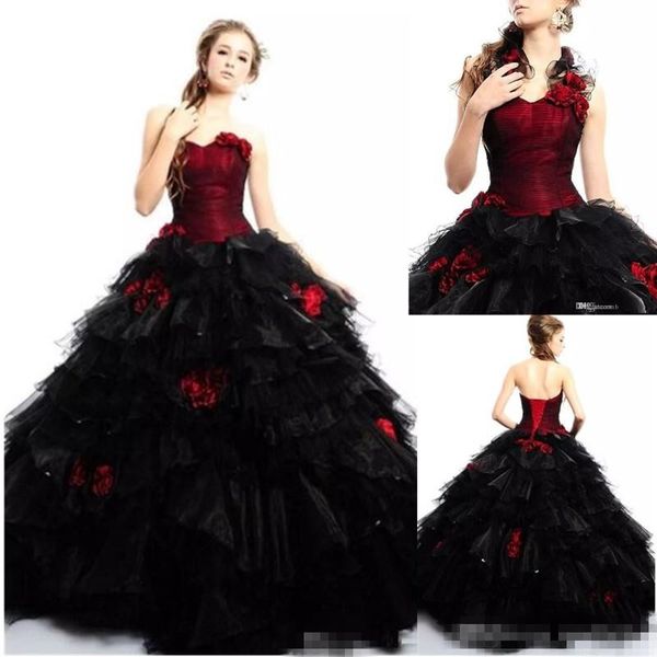 Discount Vintage Burgundy Gothic Ball Gown Wedding Dresses With