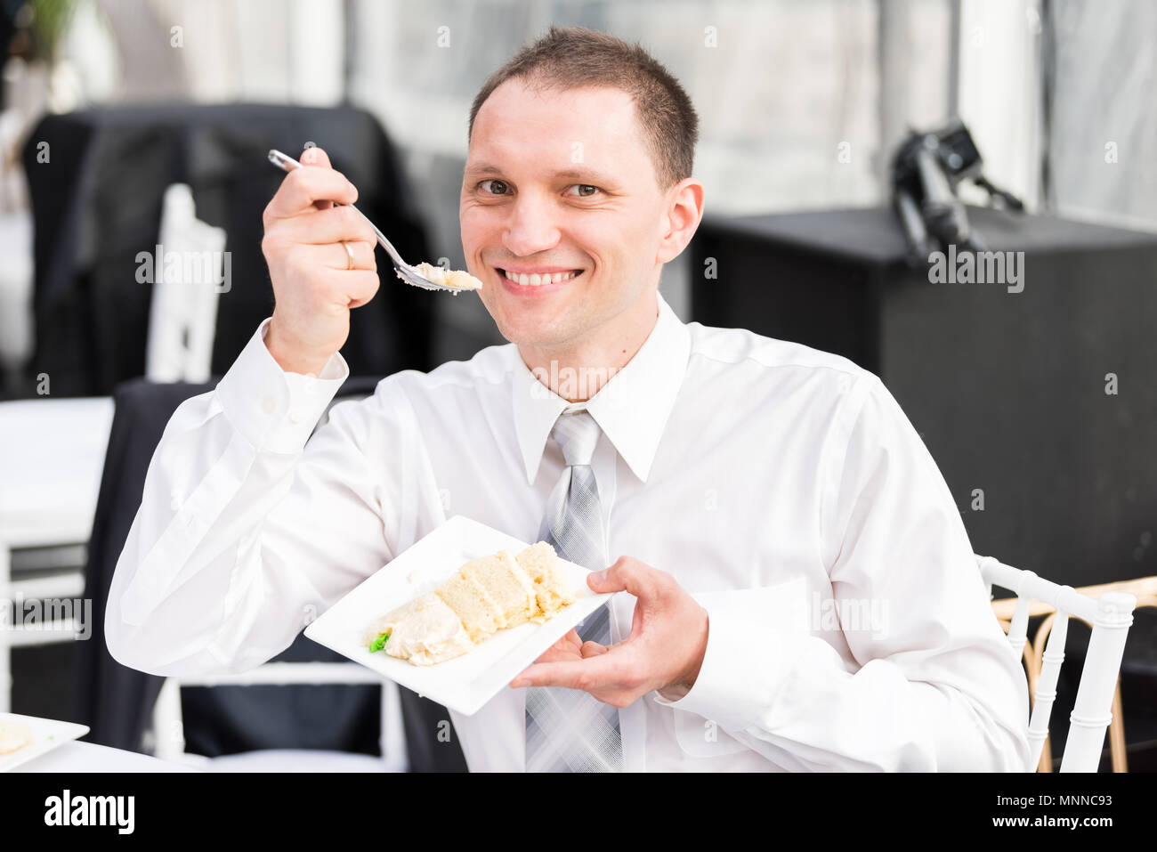 Fat Man Eating Cream Cake Stock Photos Fat Man Eating Cream Cake