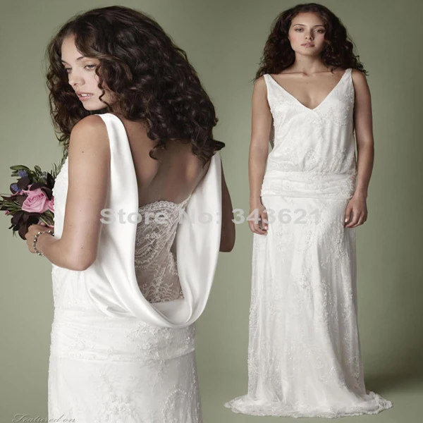 1920s Style Elegant Vintage Lace Wedding Dress V Neck Sheer Back