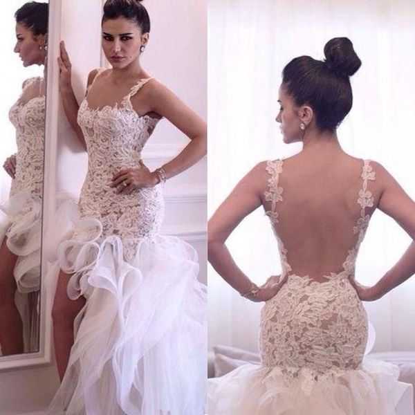 Lace Backless Wedding Dress Trumpet Scalloped Key Hole Back Open