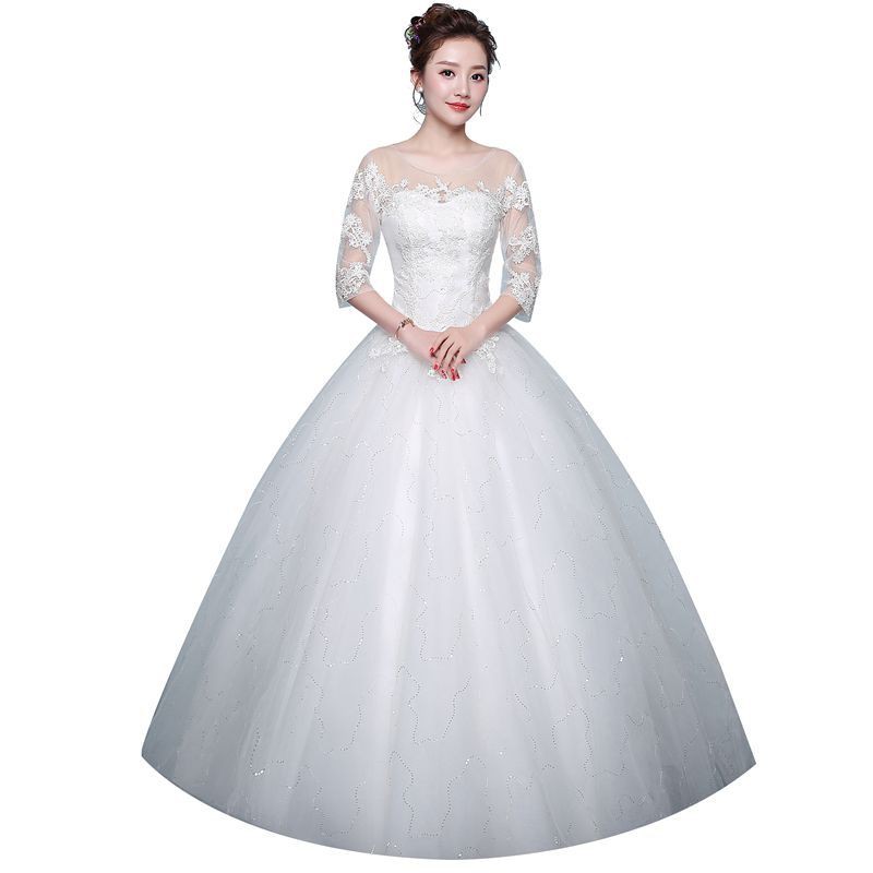 Plus Size Boat Neck White Lace Sleevs Wedding Dresses Princess