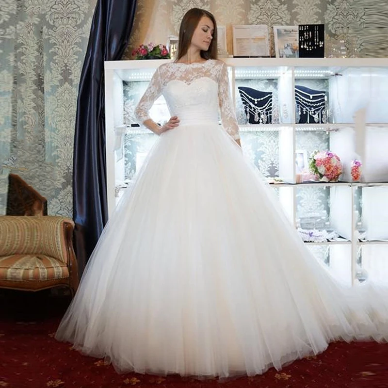 Robe De Mariee Simple Long Sleeves Lace Wedding Dress 2019 Ball
