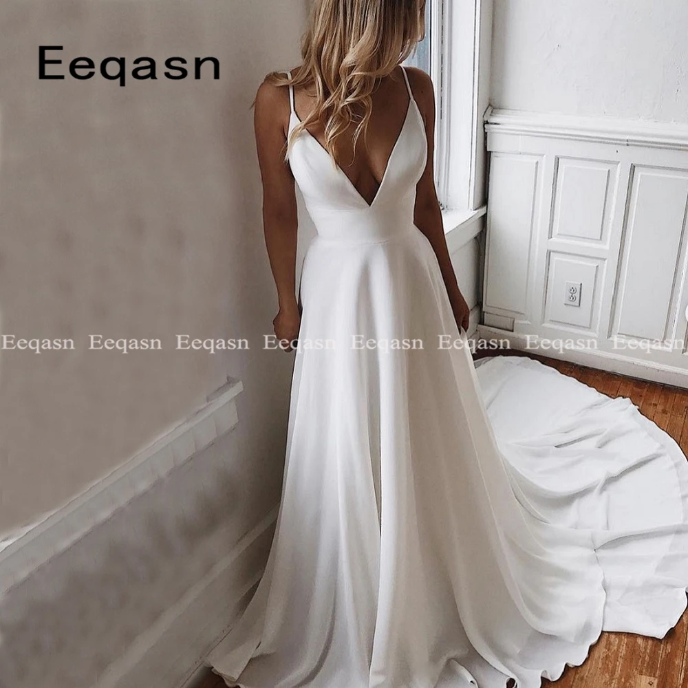 New Sexy Spaghetti Straps V Neck Wedding Dresses 2019 Long Simple