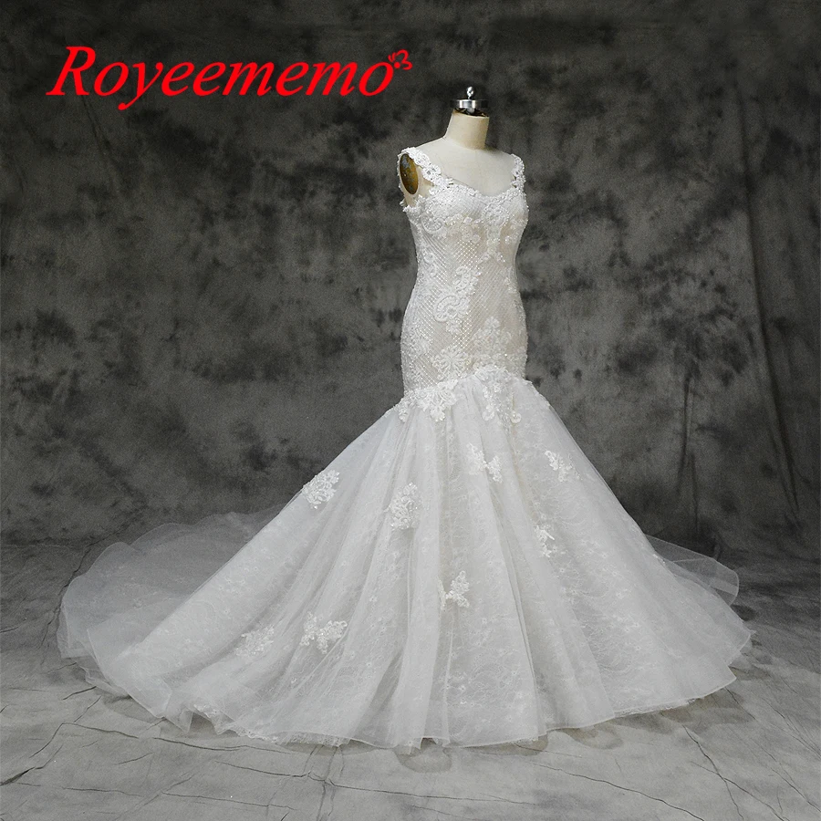 2019 Nude Lining And Ivory Lace Mermaid Wedding Dress Heavy