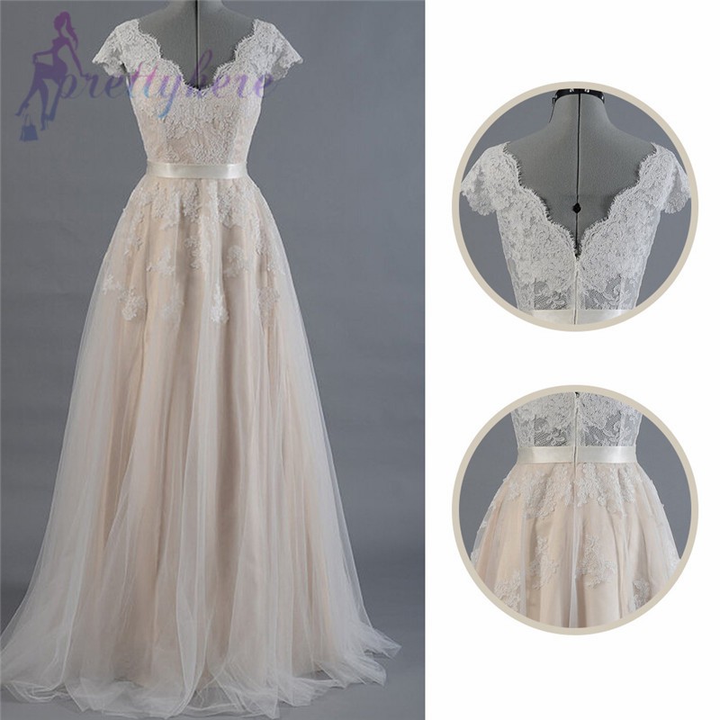 Ph Women Champagne Lace A Line Wedding Thin Dress Bridal Gown Lace
