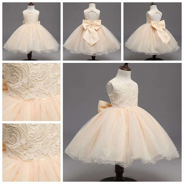 2019 Girls Dress Beige Baby Girls Wedding Dresses Lace Tutu Skirts