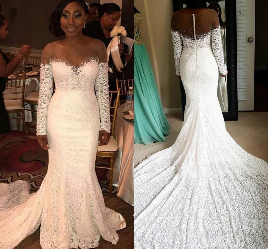 Elegant Lace Wedding Dresses Mermaid Bodycon Bride Dresses