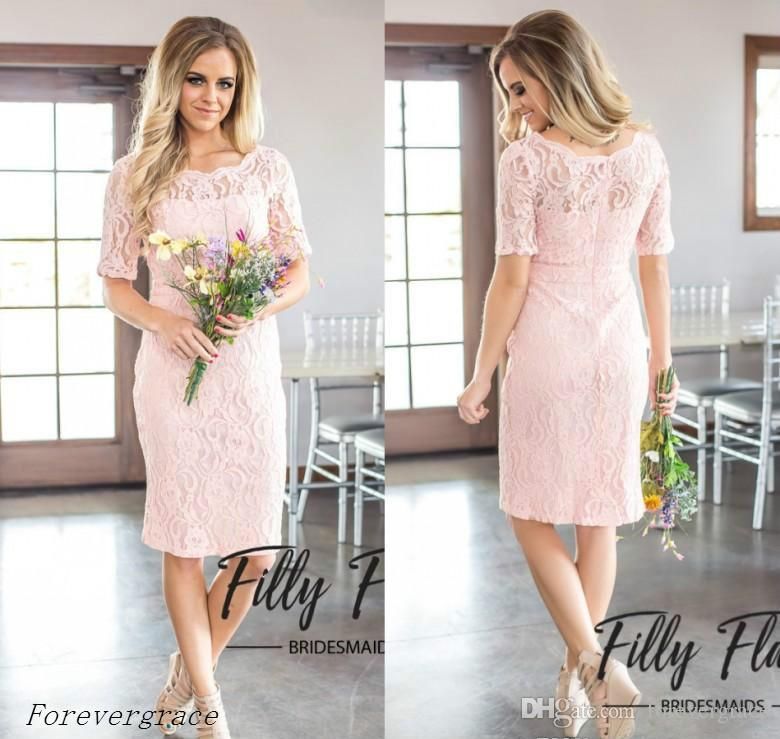 2019 Hot Summer Pink Lace Garden Bridesmaid Dress Half Sleeves