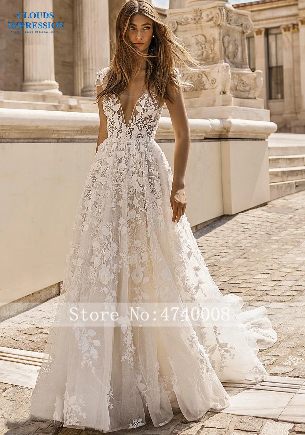 Clouds Impression Sexy Backless 2019 Deep V Neck Lace Wedding
