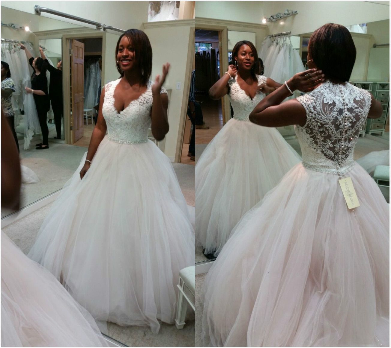 Custom Deep V Neck Lace Wedding Dresses Ball Gown Puffy Tulle