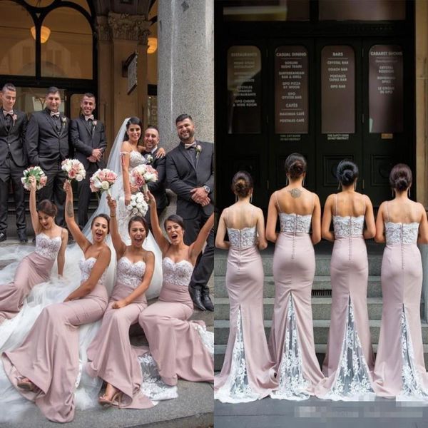 2018 Dusty Pink White Appliques Mermaid Bridesmaid Dresses For