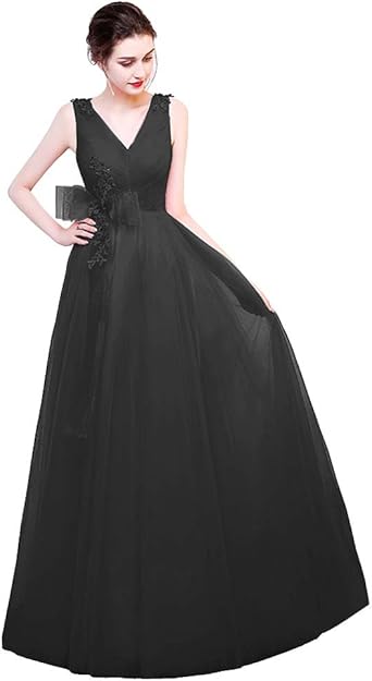 Beauty Emily Evening Dresses Long V Neck Tulle Organza Bowknot