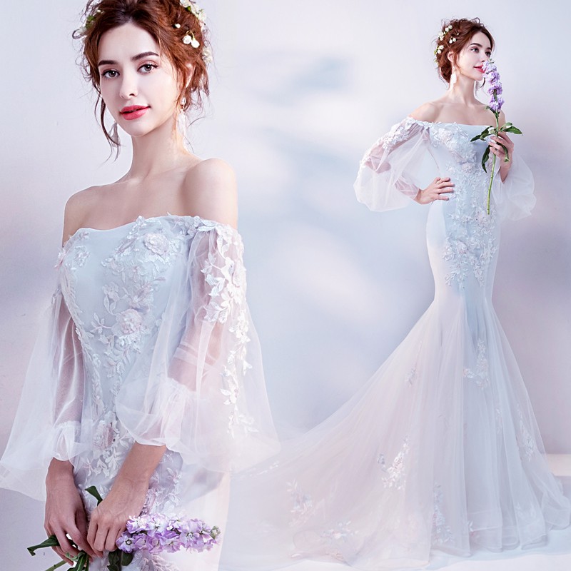 Discount Photos Gaudy Nice Shoes Long Sleeve Lace Fishtail Wedding
