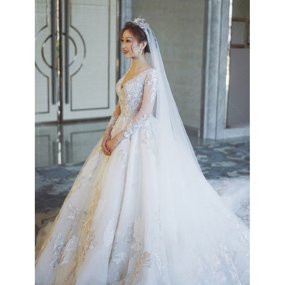 Pre Order White Long Sleeve Fishtail Wedding Bridal Dress Gown