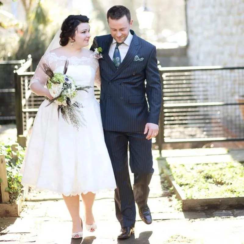 Half Sleeve Bridal Gowns Vintage Wedding Dresses With 1 2 Sleeves