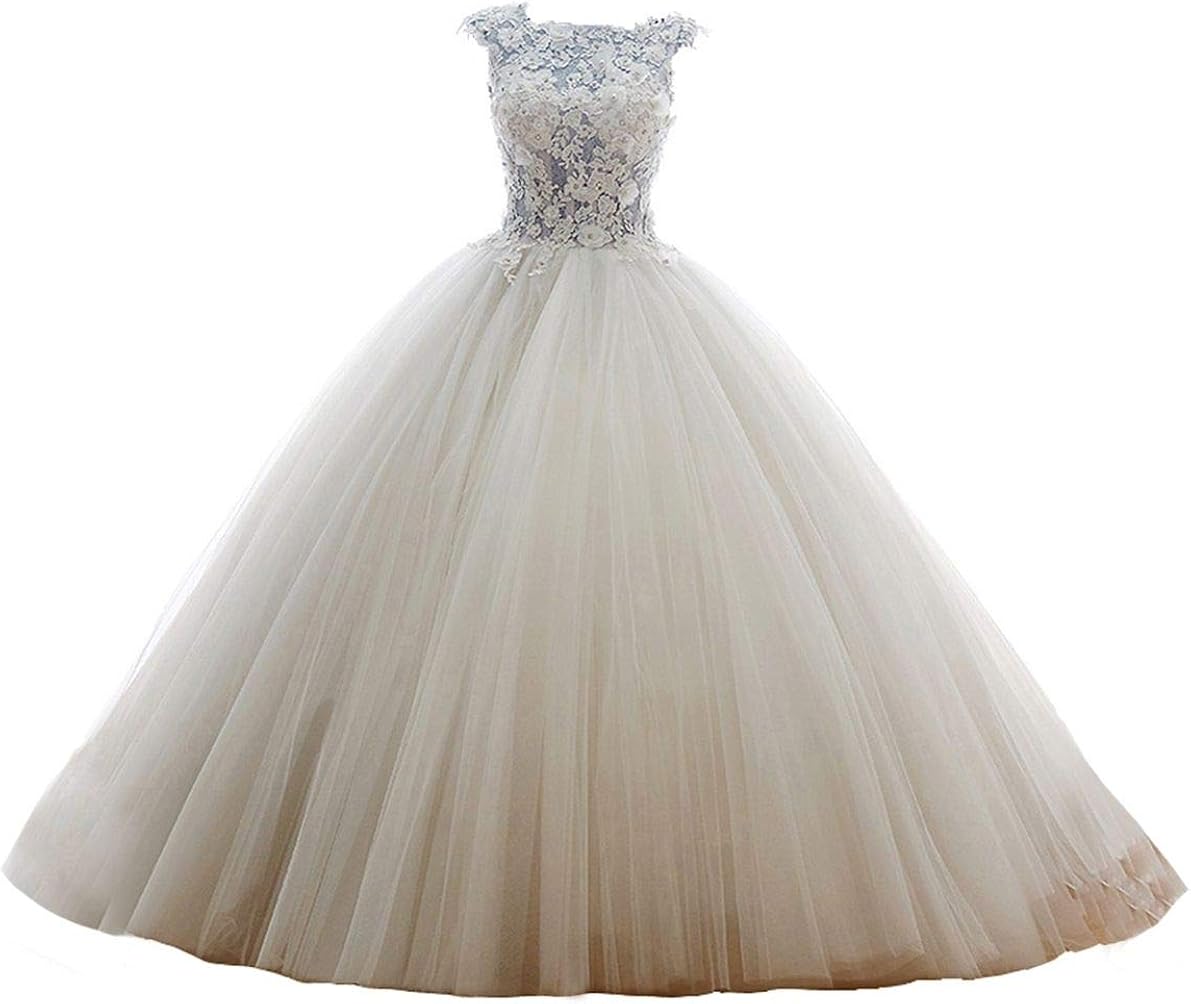 Ball Gown High Neck Lace Tulle Zipper Wedding Dress Ucenter Dress