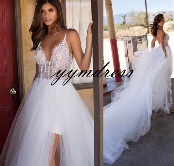 Bien Savvy New 2017 Sexy Deep V Neck Wedding Dresses See Through