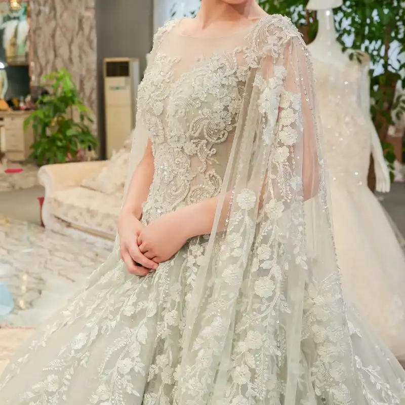 Luxury 2018 Light Gray Wedding Dress Cape Delicate Lace Floral