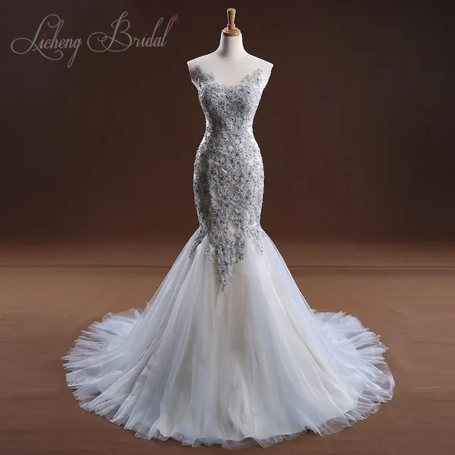 Light Gray Wedding Dresses Delicate Floral Crystal Empire Bridal