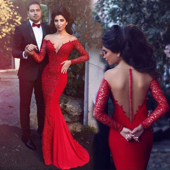 E117 Sexy V Neck Backless See Through Long Prom Dress Red Long