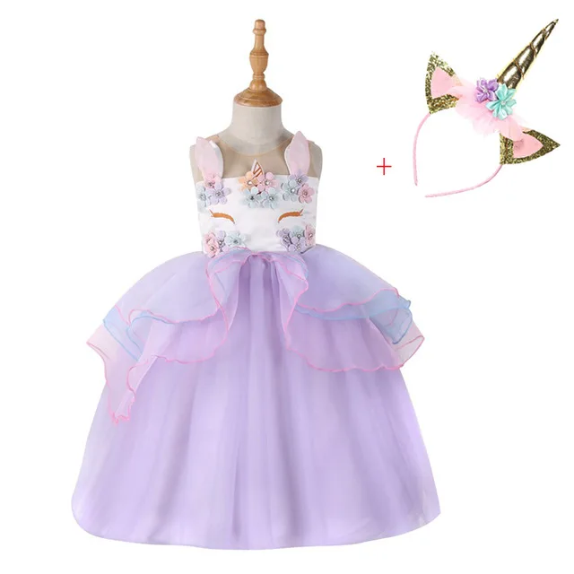 Unicorn Headband Party Girls Pony Dress Elegant Cinderella Elsa