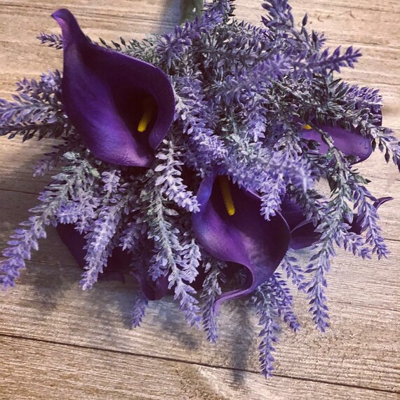 Rustic Lavendar Purple Calla Lilly Wedding Bouquet Bridal Etsy