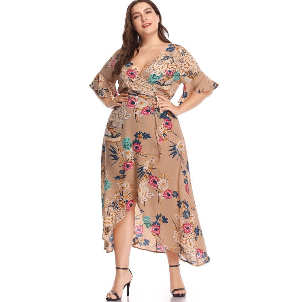 Women S Plus Size Floral Maxi Dress Sexy V Neck Wrap Long Dress