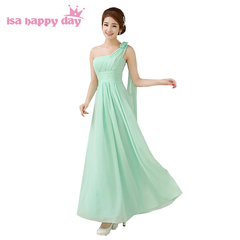 Mint Green Chiffon Women One Shoulder Bridesmaid Long Formal