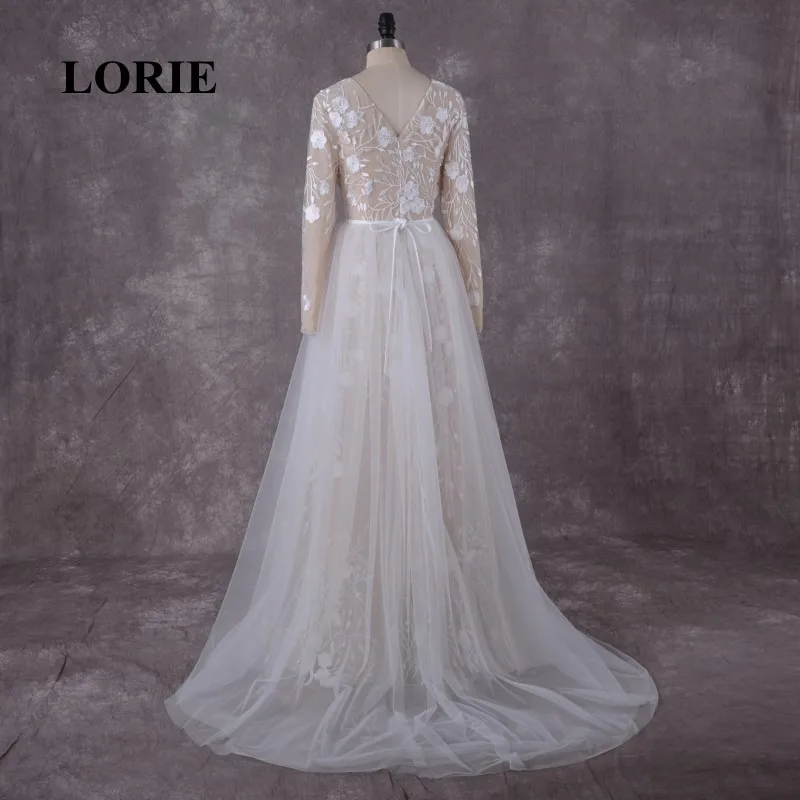 Lorie Plus Size Long Sleeve Lace Wedding Dress Detachable Train V