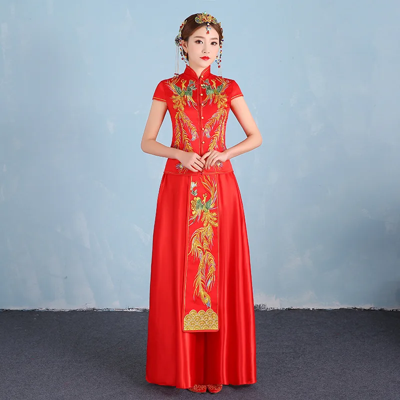 2019 New Red Bride Traditions Women Phoenix Embroidery Cheongsam