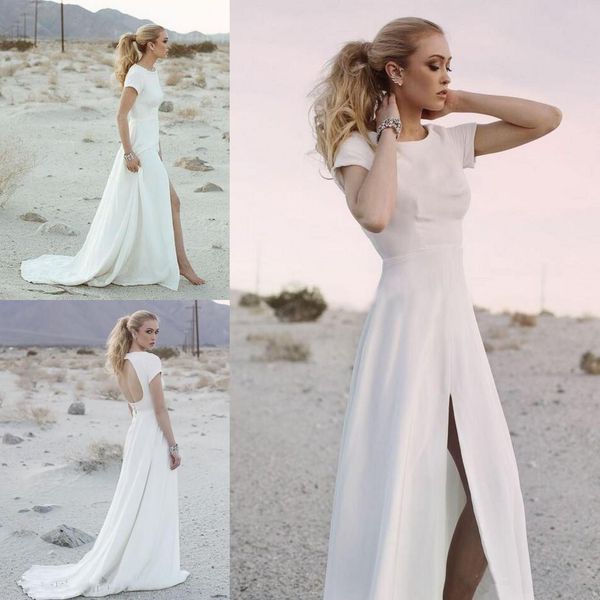 Discount Summer Satin Backless Beach Wedding Dresses Jewel Neck