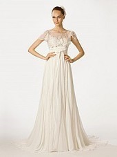 Cap Sleeved A Line Chiffon Bridal Dress With Sh