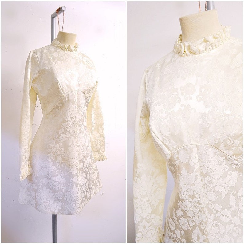 1960s Ivory Silk Jacquard Patterned Empire Line Wedding Dress Etsy