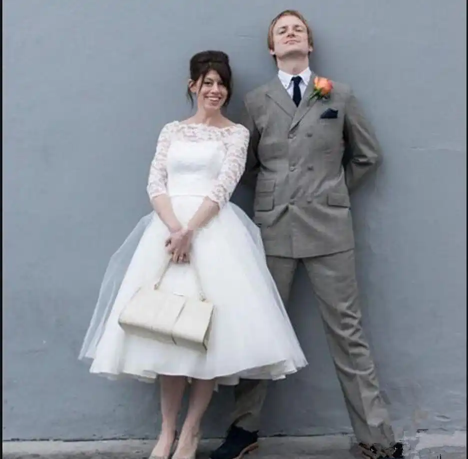 2019 Elegant Bateau Neck Simple A Line Short Wedding Dresses 3 4